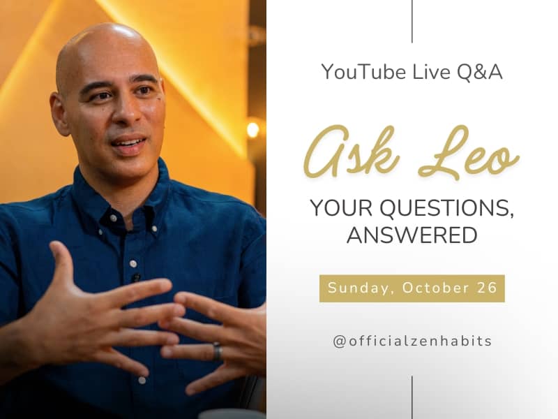 The questions I get from the Zen Habits community — in comments, emails, and conversations — are a gift. They remind me how much we’re all navigating, and I wanted to create a space to explore them more fully. That’s what this month’s YouTube Live is about. It will be an open Q&A session where I’ll respond to your questions on habits, mindfulness, simplicity, and the challenges of creating meaningful change. I’ll be answering some of the questions you’ve shared ahead of time, and I’ll also...